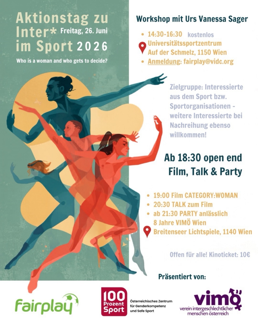 Präsentiert vom Verein Intergeschlechtlicher Menschen Österreich (VIMÖ), 100% Sport und fairplay – Initiative für Vielfalt und Antidiskriminierung im Sport