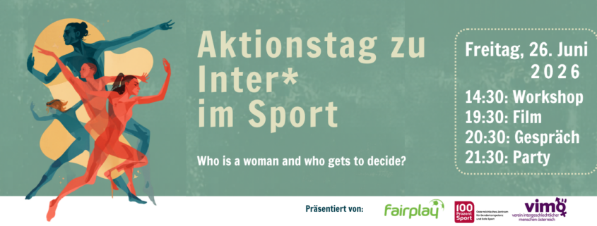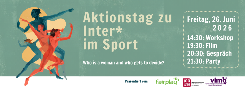 Am Freitag, den 26. Juni 2026 laden wir gemeinsam mit FairPlay und 100% Sport zu einem Aktionstag ein. Wir bieten einen Workshop an und haben ein Filmscreening mit anschließendem Podiumsgespräch organisiert. Danach gibt es eine kleine Party. Das übergreifende Thema wird „Inter* im Sport“ sein.